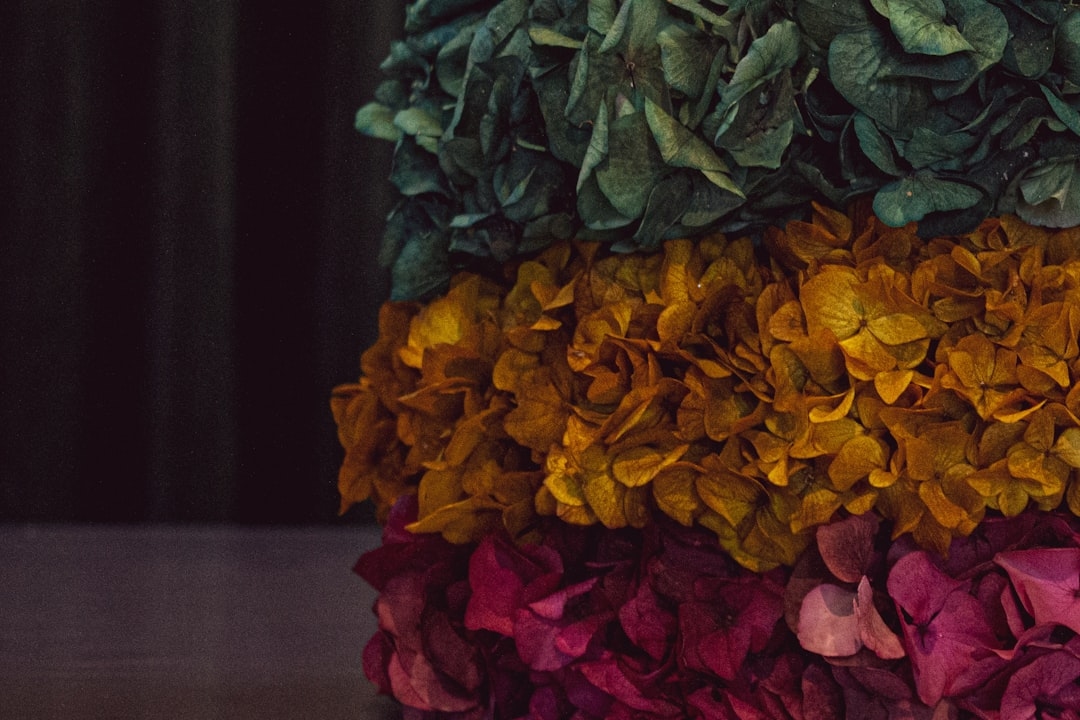 - Place the arrangement away from direct sunlight or heat sources. While hydrangeas love humidity, they wilt quickly under harsh rays.
